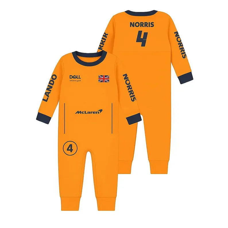 Dress your little racer in style with this adorable Lando Norris baby suit! Made from soft, breathable fabric, it’s perfect for future F1 fans. A must-have for McLaren supporters, this outfit brings racing excitement to your baby's wardrobe!